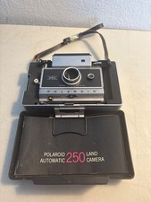 The Vintage Polaroid Automatic 250 Land Camera is a classic piece from the United States, featuring a sleek black color and the iconic Polaroid brand. This camera model, which comes with a case and strap, offers a unique instant photography experience that harkens back to a bygone era. While the camera is untested and being sold as-is, it retains its charm and nostalgia for collectors and photography enthusiasts alike.