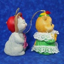 Vintage Porcelain Kitty Cat Bell Ornaments Lot Of 2 Giftco & New Design