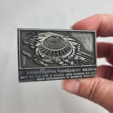 This vintage printing block, measuring 2.25 inches, is a unique piece showcasing a triodetics structure building architecture design. Originating from the United States, this printing block is a rare find for collectors and enthusiasts of antique printing techniques. Perfect for adding a touch of historical elegance to any printing or crafting project.