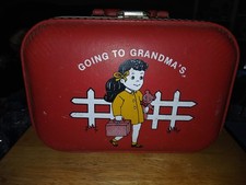 Vintage Red Suitcase That Says "Going To Grandmas"