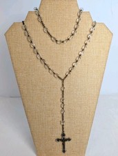 Vintage Rosary Faceted Square Rock Crystal Beads Two Tone Crucifix Cross