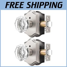 Vintage Satin Nickel Crystal Door Knobs 2 Pack