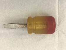 Vintage SEARS Short Stubbie Flat Head Screwdriver Red and Yellow Handle 3 1/4"