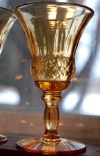 Pressed glass, depression era. Unusual shape with a diamond facet base of bowl and a beautiful columned stem. Very lovely color is a rich amber. They are not in their original boxes unless noted. I strive to give you the VERY best service possible.