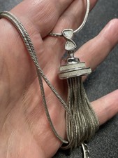 Vintage Signed 1946 Silver Tone Tassel Chain Pendent 32” Necklace