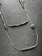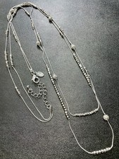 Vintage Signed CHICOS 40” Crystal Rhinestone Silver Tone Layered Beaded Necklace