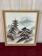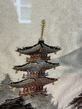 Vintage Silk Embroidered Art Picture Japanese Landscape Framed 16in x 18in frame