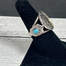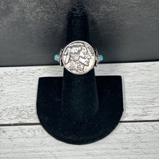 Vintage Silver 925 Navajo 1937 Indian Head Nickle Turquoise Ring Signed BBJ Sz 7