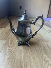 This vintage Silver EP brass footed coffee/tea pot is a beautifully crafted piece with an ornate floral handle and spout, perfect for adding a touch of elegance to any tea or coffee service. Made in the United States between 1900-1940, this Victorian style pot is a true antique with a timeless design that is sure to impress. The silverplate composition gives it a unique sheen and texture, making it a standout piece for collectors or those who appreciate vintage decor.