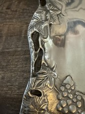Vintage Silver Metal Serving Tray With Grapes