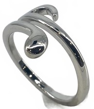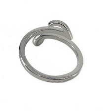 This bypass ring features a sleek, fluid wrap design with a high-polish silver-tone finish. The band terminates in two distinct sculptural ends, one rounded and one tapered, creating a continuous motion aesthetic. The minimalist silhouette offers a clean, contemporary look suitable for daily wear or stacking. The item is in excellent vintage condition with a bright, reflective surface and minimal surface wear. It is a cast metal piece with a solid, mid-weight feel. The ring is a fixed size 8 and does not show signs of previous resizing. This modernist accessory aligns with the Y2K-era obsession with liquid metal and chrome finishes. Its simple geometry makes it a versatile addition to a capsule wardrobe or a boho-chic collection. Modernist / Minimalist