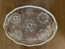Vintage Snowflake Oval Glass Candy/ Relish Dish 9 1/4” X 7”