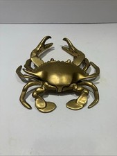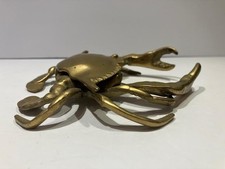 Vintage Solid Brass Crab Trinket Box Ashtray Coastal Decor with Hinged Lid