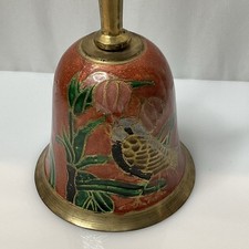 Vintage Solid Brass Decorative Enamel Bird Hand Bell 7 In