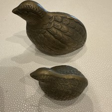 Vintage Solid Brass Quail Figurine Set (2) Handcrafted Korea Bird Paperweights additional preview