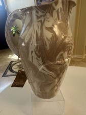 This Vintage St. Helens Ash Ware Pottery Pitcher/Vase is a unique piece of North American art pottery from the 1980s. Handmade with a swirl pattern and multicolor ash glaze, this vase stands at 9.5 inches tall and 7 inches long, making it a decorative and stylish addition to any space. Signed by the artist, LD, this vase showcases the creativity and craftsmanship of Mt. St. Helens Ash Ware, known for their distinctive use of ceramic clay mixed with volcanic ash.
