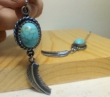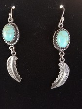 Vintage Sterling And Turquoise Feather Drop Earrings 2" Long