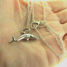 Vintage Sterling Silver 925 Dolphin Pendant Necklace 1*18
