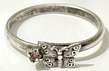 Vintage Sterling Silver Adjustable Butterfly Ring with Pink Stone. This tiny adjustable ring is currently a size 5 and the butterfly measures 3/16" by 1/4" and weighs 1 gram.