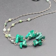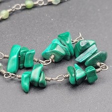 Vintage Sterling Silver Malachite Necklace Artisan Wire Wrapped Boho Toggle...