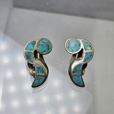 Vintage Sterling Silver Natural Turquoise Inlay Earrings Zuni Ellen Quandelacy?