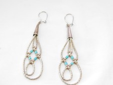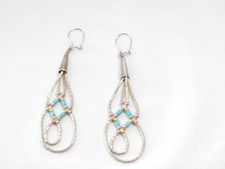 Vintage Sterling Silver Turquoise Beaded Dangle EarringsNative American E706