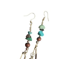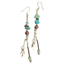 Southwestern-style dangle earrings feature an eclectic mix of genuine turquoise nuggets, natural stone beads, and multi-stone accents. Hand-crafted with a desert-inspired aesthetic, these lightweight pieces incorporate silver-tone findings and distinctive 925 stamped sterling silver ear hooks.