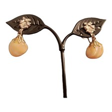 Vintage Stone w/Silver-Tone Claw Like Setting Pendant Necklace 17" Drop and a pair of screw back matching earrings.