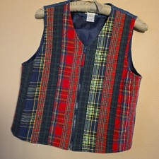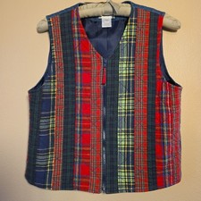 Vintage Susan Bristol Quilted Patchwork Plaid Vest Women's Medium Full Zip 90s