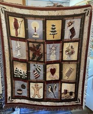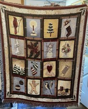 Vintage Tapestry Throw Woven Fringed Blanket Christmas Riggsbee 49”X 58” In great condition ** Measurements do not include the fringe**