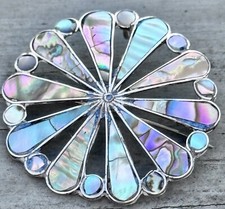 Vintage Taxco Mexico Sterling 925 Pendant Brooch Abalone Inlay Signed CRE 1.8”