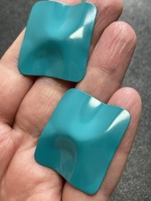 Vintage Teal Green 1.3” Wavy Rectangular Enameled Metal Earrings