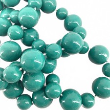 This graduated bead necklace features a saturated teal green hue. This accessory aligns with Mid-Century minimalist aesthetics. The bold color and graduated silhouette serve as a versatile accent for professional or casual attire.