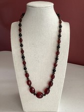 Vintage TESTED Bakelite Graduated Faceted Cherry Red & Black Bead Necklace 21”