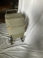 Fresh from the attic. My mother had a large antique doll collection and must have acquired this vintage 1940’s or 1950’s Thayer doll carriage at a local estate sale. With the hood raised, the carriage measures 31” high, 32” long, and about 13” wide. The hood is in rough condition as soon in photos. The wheels need a good cleaning but I leave that pleasure to whomever acquires this vintage gem. There is a fragment of a sticker from Blinnis, the Westport Ct retailer where this was sold. Note: The handle will be removed to facilitate shipping. It is easily reattached with the included nuts and bolts.