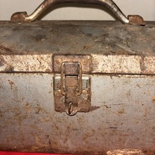 VINTAGE TOMBSTONE TOOL BOX 19”- Not Pretty-lid Dented-All Hinges Good