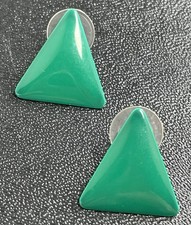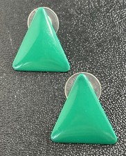 Vintage Triangle Green Enameled Metal Drop Earrings