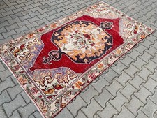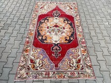 Vintage Turkish Large Area Rug 4.3x7.9 ft Hand Knotted Wool Red Medallion Decor