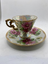 Vintage Ucagco Japan September Aster Luster Teacup & Saucer Gold Trim