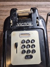 The cover on thos is very old and has holes in it. The vintage "Victor" black adding machine is a charming piece with its original cover intact. This mercantile item from the past is perfect for those who appreciate retro technology and unique antique pieces. As a cash register or adding machine, it holds historical significance and adds character to any space. The black color and classic design make it a timeless piece that can be a conversation starter in any room.