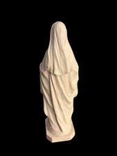 The statue appears to be made from cast alabaster or a marble dust composite, giving it a solid feel and a softly detailed finish. • Material: cast alabaster / marble composite. A thoughtful piece for collectors of Catholic devotional art or those with a connection to the Catholic Daughters organization.