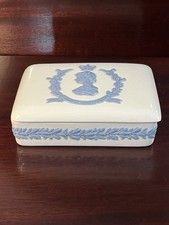 The Vintage Wedgwood Queensware Queen Elizabeth II Coronation Trinket Box is a exquisite piece commemorating the coronation of Queen Elizabeth II. With its elegant design and historical significance, this box is a perfect keepsake for any British royalty enthusiast. The timeless beauty of the Queensware collection adds a touch of sophistication to any collection, making it a cherished item for those who appreciate vintage beauty and royal history. Preowned it is in good condition It is 5 inches long, 4 feet wide and 1.5 inches tall Please refer to pictures before making your purchase