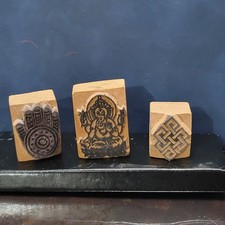 Vintage Wooden Printing Stamps Hand-Carved Blocks Indian Block Print Lot Of 3