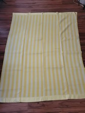 This listing is for a vintage wool blanket with yellow and white stripes. The blanket has satin trim on two ends. It measures 88 inches by 70 inches. There is no label. I found a few very small spots that I have shown with quarters. It appears to be in good condition otherwise. Please look closely at the photos and ask if you have any questions.