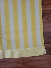 Vintage Wool Blanket Satin Edge Band 88x70 Stripe Yellow White