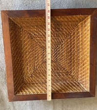Vintage Woven Wicker Recessed Basket Wall Hanging Shadow Box Boho 16.5 X 16.5 “