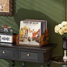 Vinyl Record Storage Holder, Trapezoidal LP Vinyl Record Crate with Handle, Wood