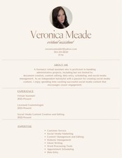 ✨ Now Booking Virtual Assistant Clients ✨ Hi, I’m Veronica Meade — a freelance Virtual Assistant helping busy entrepreneurs stay organized, visible, and stress-free 💻🤎 For just $17/hr, I offer: • Document creation & editing • Data entry • Appointment scheduling • Social media management • Content creation & editing • Website management • Ghostwriting • Customer service support As a Licensed Cosmetologist and content creator, I understand branding, engagement, and how to create content that actually connects. If you’re ready to save time and focus on growing your business — I’m ready to connect!