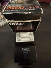 The Vivitar Auto 2600 Flash is a shoe-mount flash unit that is designed to attach to a camera for improved lighting. This specific model has been tested and confirmed to be in working condition, making it a reliable option for capturing high-quality photographs. The original box ensures that the product is stored securely and can be easily transported for on-location use. As a reputable brand in the market, Vivitar is known for producing durable and efficient camera accessories, making this flash a valuable addition to any photographer's equipment collection. Buyer pays shipping. Shipping in the United States only. No returns. Tested and works great! Thanks!