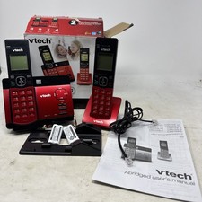 Pre-owned - see photos for condition The VTech CS6929-26 Cordless Phone System in red features two handsets, allowing for convenient communication throughout the home. With a sleek design and essential features like answering machine, caller ID, and phone lines, this system provides reliable connectivity for all your household needs. This untested product offers a versatile and user-friendly solution for staying connected in a modern household.
